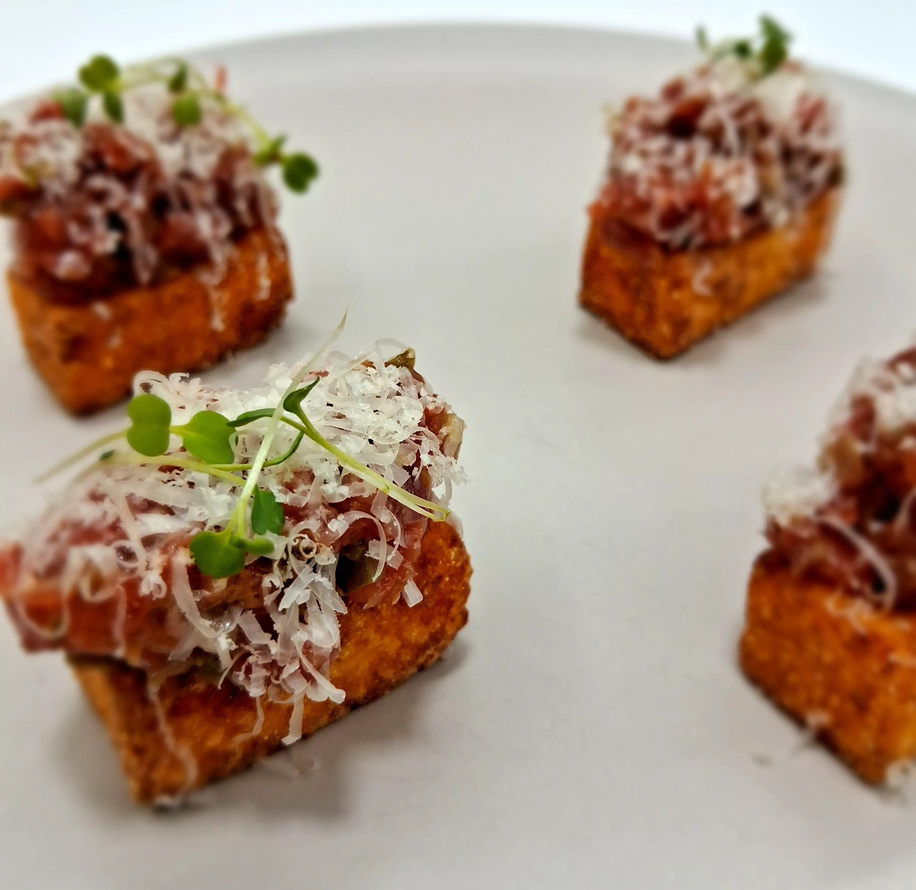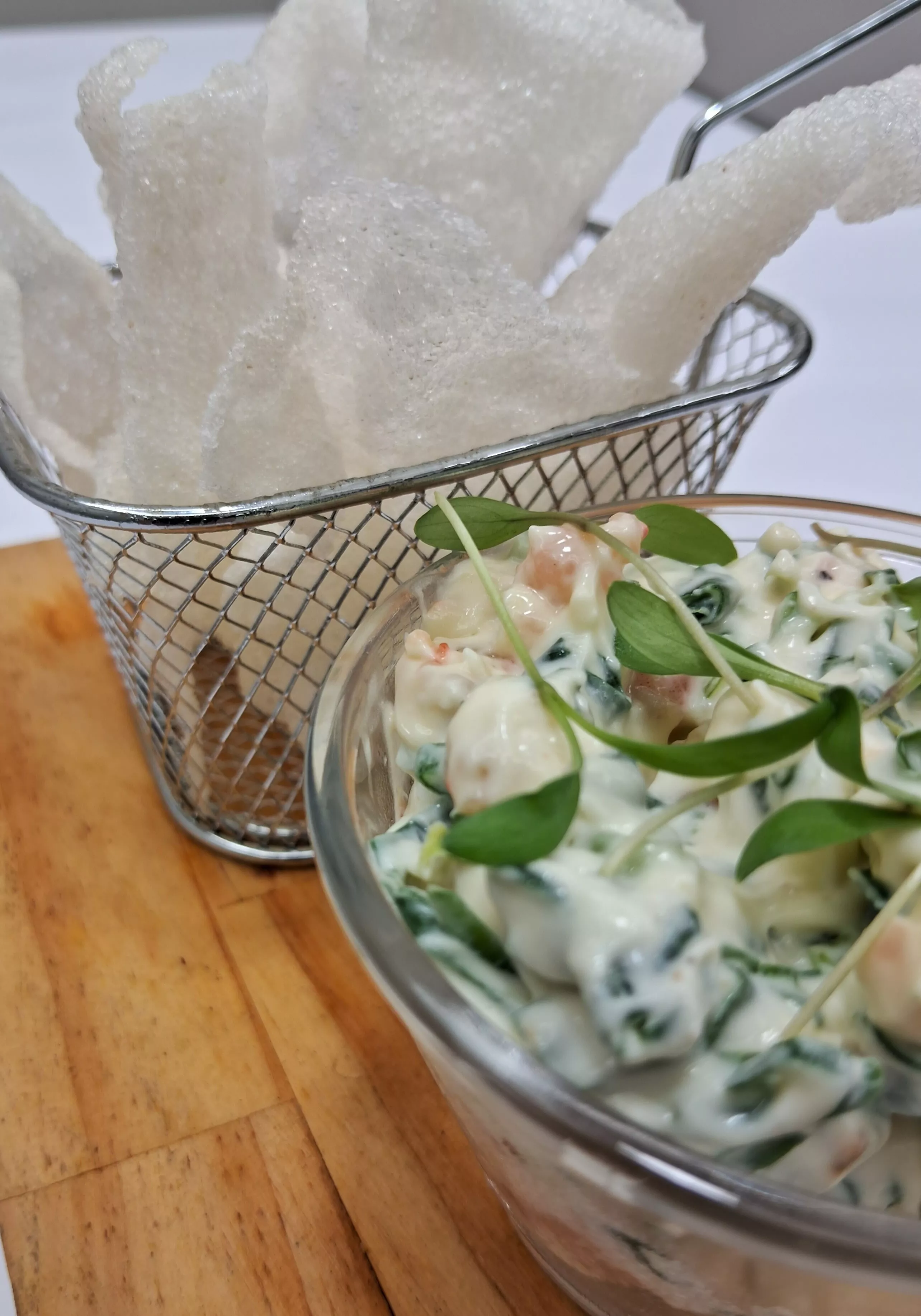 Brandade de bacalhau com crocante de tapioca e mussarela